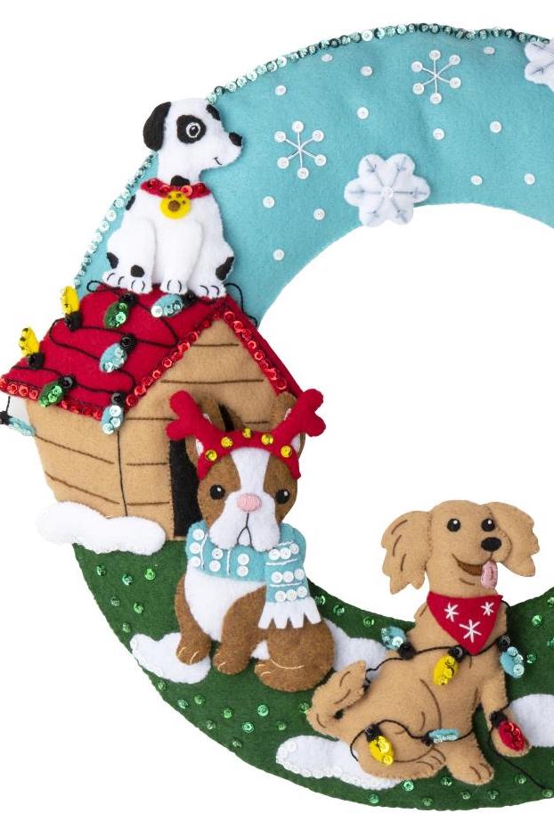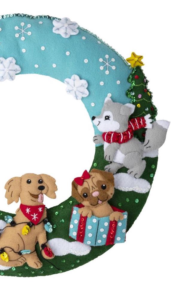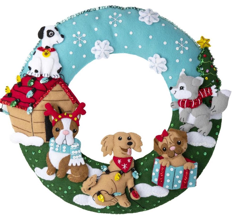 DIY Bucilla Christmas Dogs Puppy Pets Christmas Wreath Felt Craft Kit