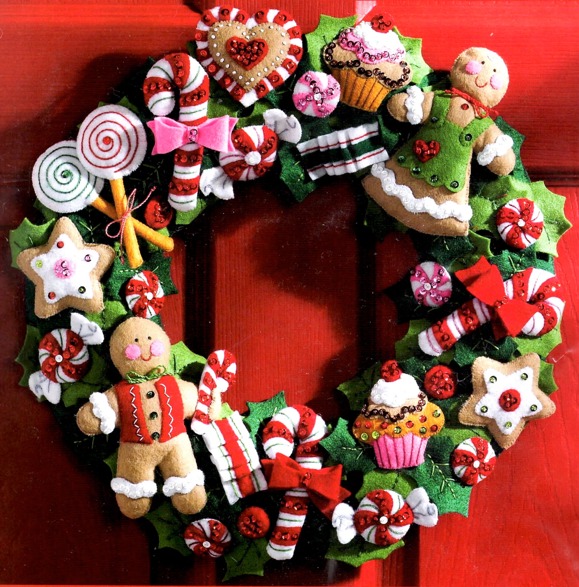 DIY Bucilla Cookies & Candy Christmas Gingerbread Wreath Felt Craft Kit