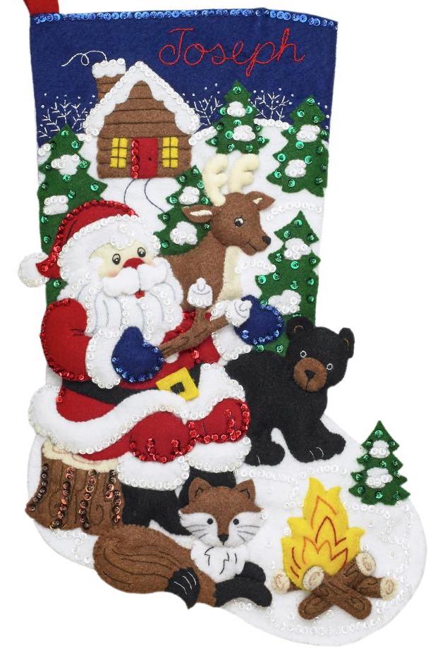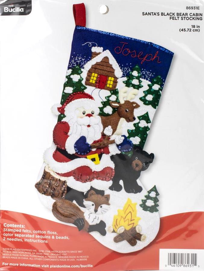 DIY Bucilla Santas Black Bear Cabin Christmas Holiday Felt Stocking Kit