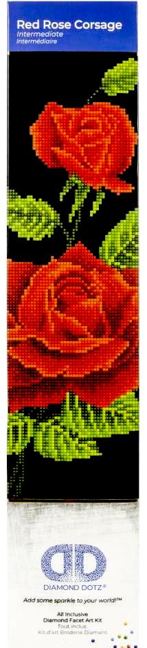 Diamond Dotz Red Rose Corsage Wall Hanging Picture Craft Kit. Makes 1 Finished Size - 10.6" x 16.5" Kit contents: - 1 High Quality Color Printed Fabric Piece ready to decorate with Diamond Dotz - Diamond Dotz presorted by shade - Diamond Dotz Stylus, Craft Tray and Wax - Complete instructions Suitable for ages 8-80 * Diamond Dotz Facet Art provides a stunning shimmery finished product. * Color Coded Sign Chart makes these easy to follow and complete by matching the diamond like facets to the sign coded bracelets.. * Facet adhesive is pre-applied to the bracelet, so all you have to do is attach the facets. * Easy and Fun