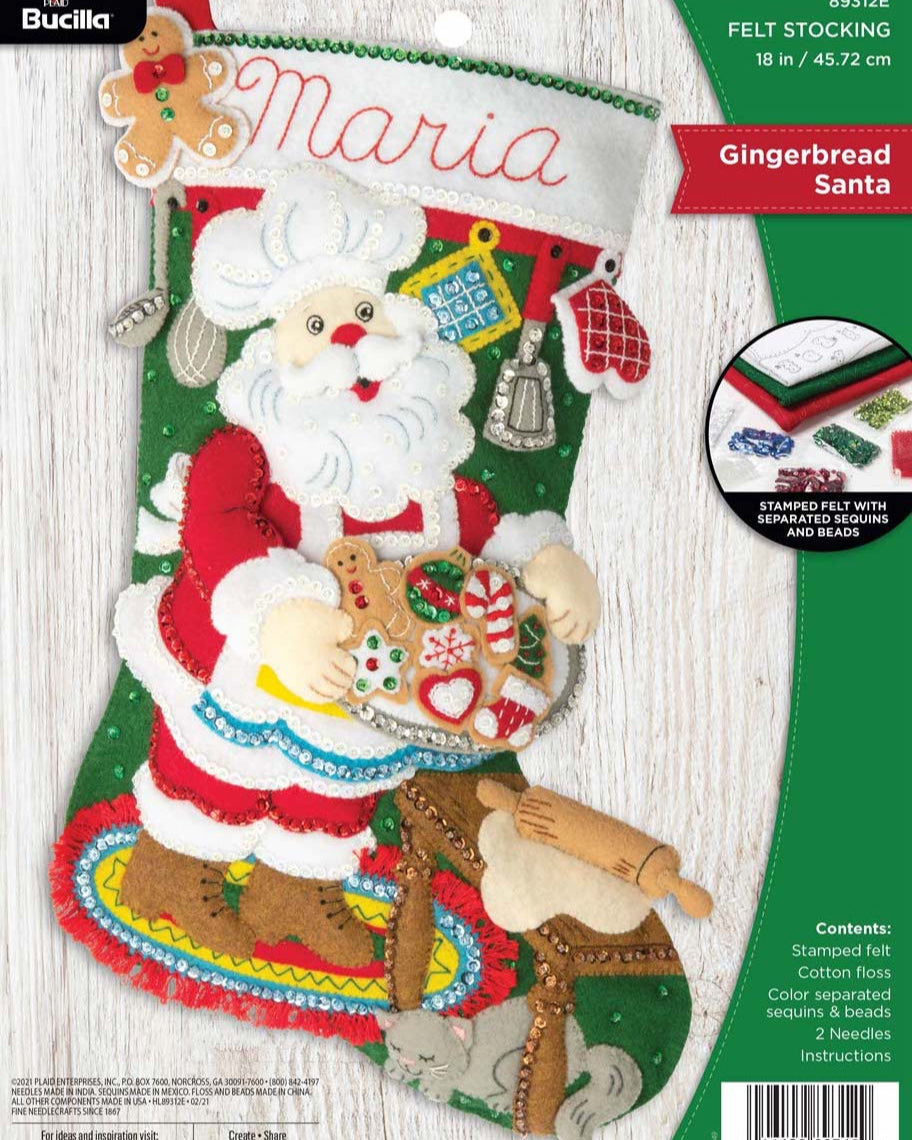 "Gingerbread Santa" Felt Applique' Stocking Kit