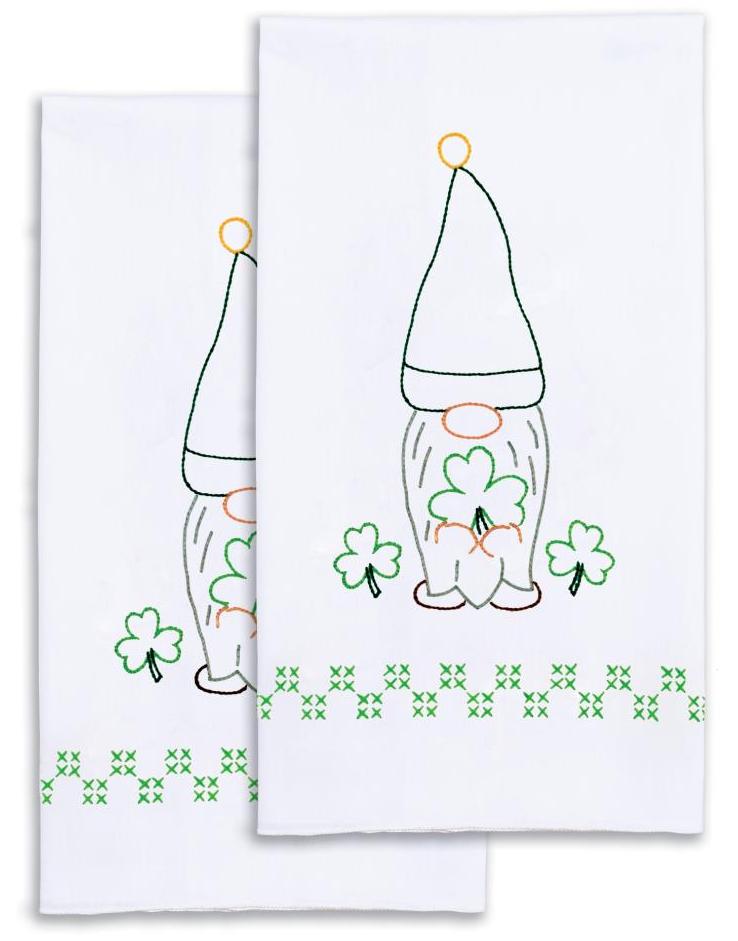 "St Patricks Day Gnome" Decorative Guest Towels Stamped Embroidery Kit
