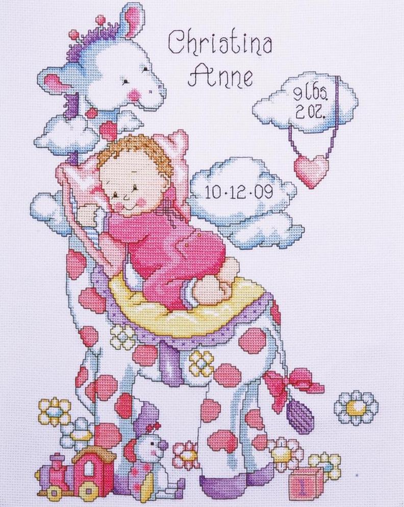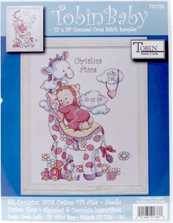 "Giraffe Baby Girl" Counted Cross Stitch Kit