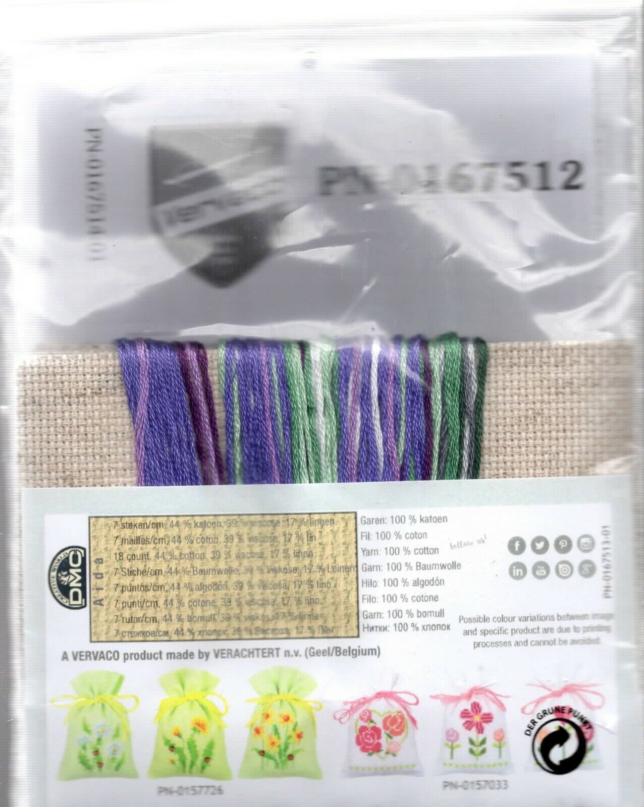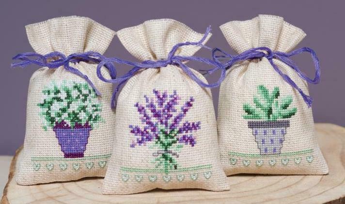 Kit Includes - 3 pre-finished sachets of 18 count aida - DMC floss - needle - chart & instructions