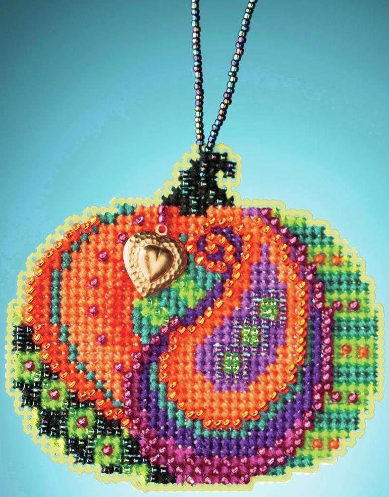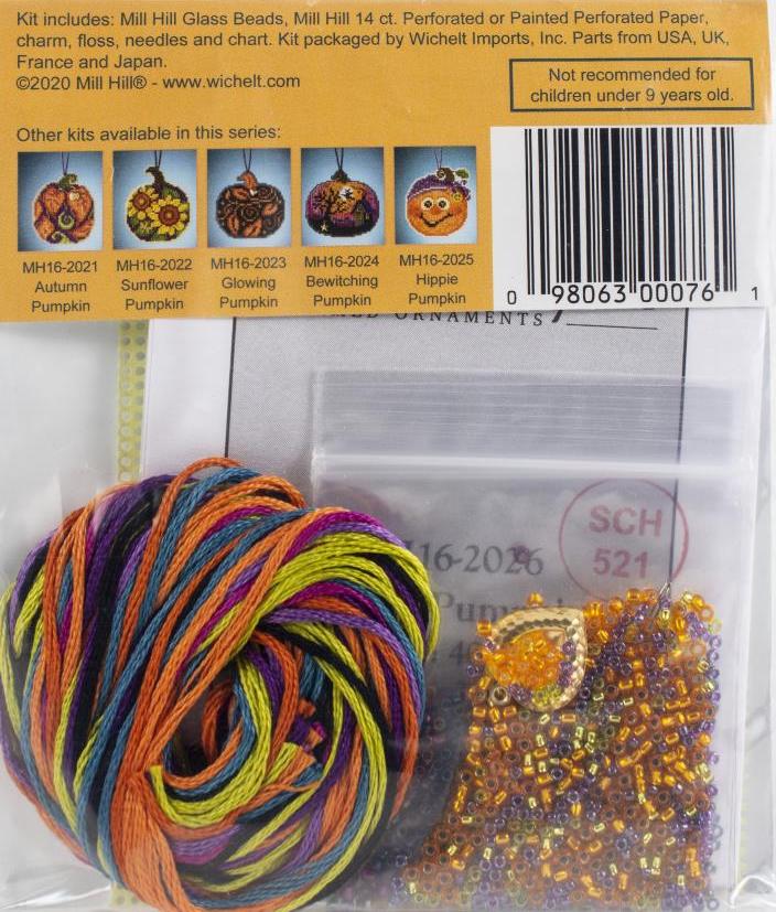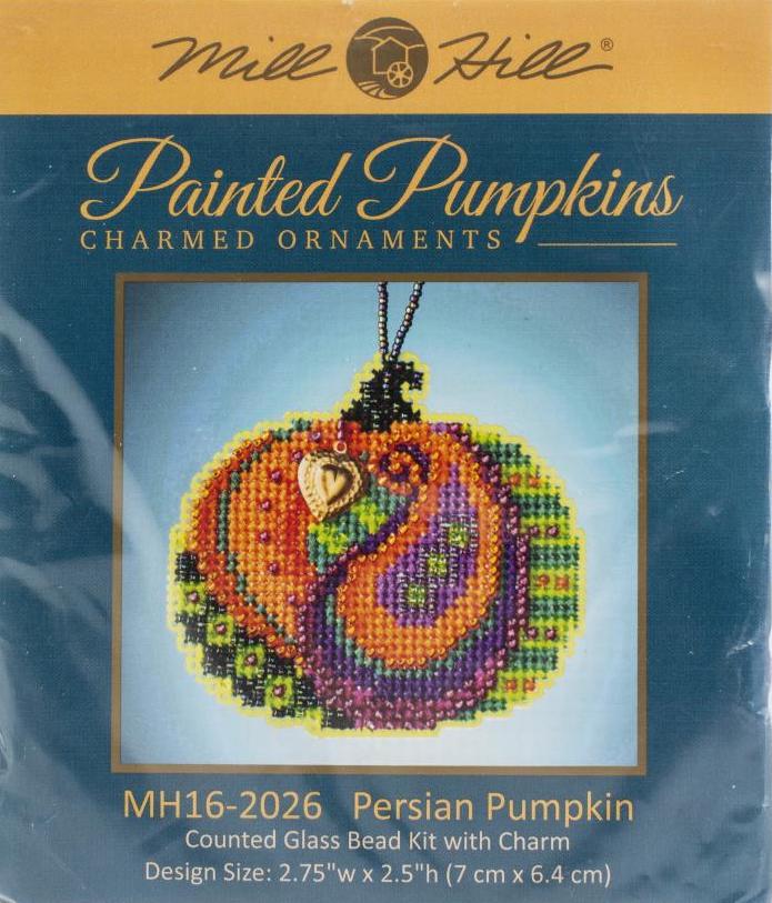 Persian Pumpkin Mill Hill Counted Glass Bead Charmed Ornament Kit Makes 1 Ornament Size - 2.75" x 2.5" Kit contents: - Mill Hill Glass Beads - Mill Hill 14ct perforated or painted perforated paper - Charm - Floss - Needles - Chart