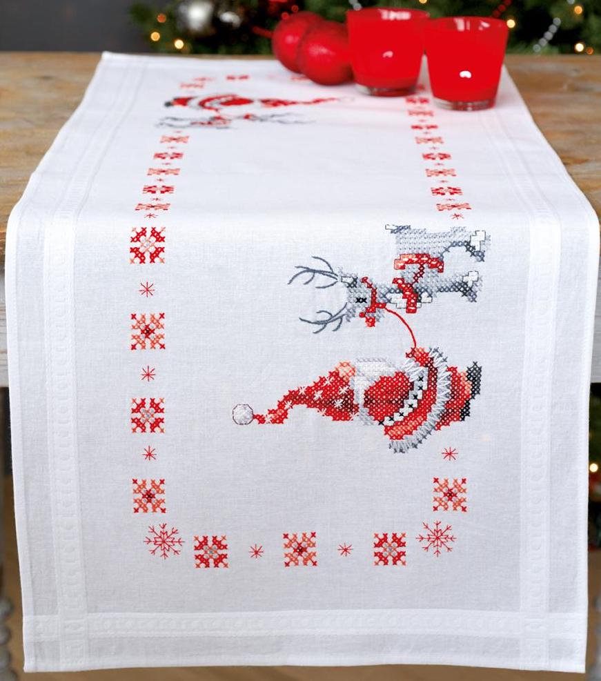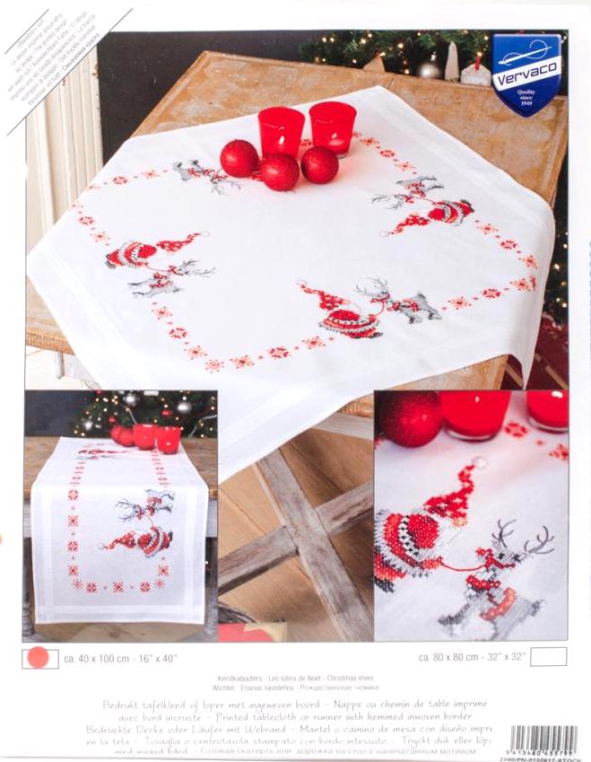 "Christmas Elves" Stamped Cross Stitch Table Runner Kit